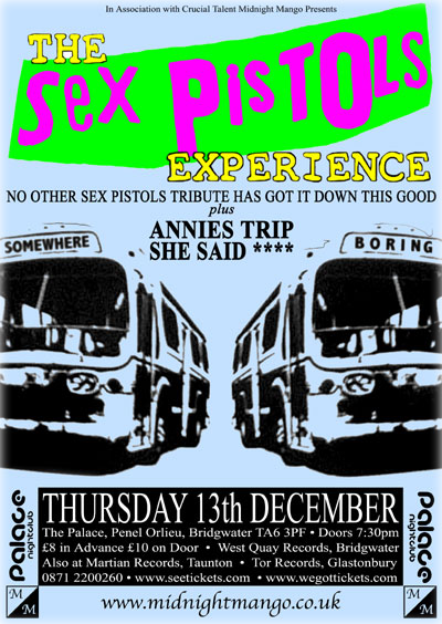Saturday 9th WHARFDALE RUGBY CLUB, GRASSINGTON, N.YORKSHIRE. Friday 14th L.A ROCK CAFÉ, CANNOCK Saturday 15th THE STANDARD,WALTHAMSTOW, north LONDON. Sunday 16th PANAMA JOES, BARNSLEY Friday 22nd THE FERRYBOAT, NORWICH Saturday 23rd KINGS ARMS, ACTON, west LONDON May 2005 (month off apart from) Tuesday 10th SONY MUSIC The Great Rock'N'Roll Swindle Dvd Launch party, Soho London