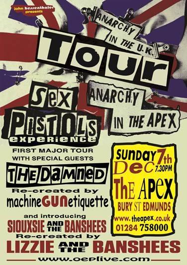 January 2016 February 2016 March 2016 11th - Glasgow 02 ABC + 'Lizzie & The Banshees' April 2016 May 2016 June 2016 July 2016 August 2016 September 2016 October 2016 November 2016 December 2016 January 2017 "ANARCHY IN THE E.U." continues in January 2017:- February 2017 March 2017 April 2017 May 2017 June 2017 July 2017 August 2017